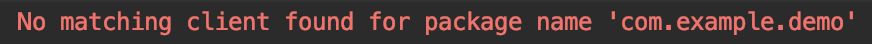 google-services.json에 오류가 발생한 패키지 명의 client_info를 추가하여 해결할 수 있다.