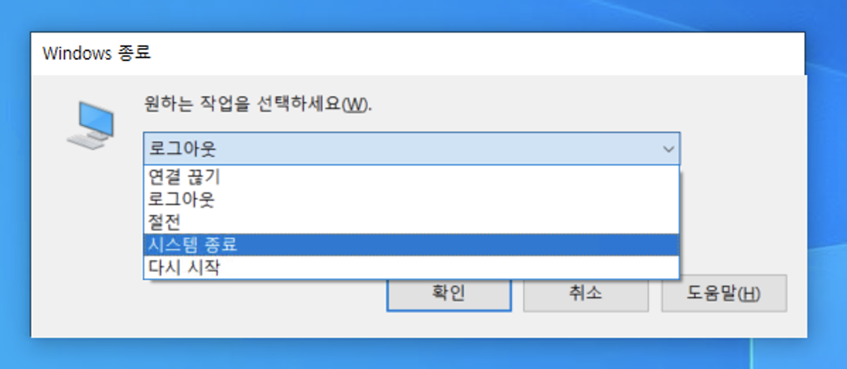 3. Windows 종료 - 연결 끊기, 로그아웃, 절전, 시스템 종료, 다시 시작