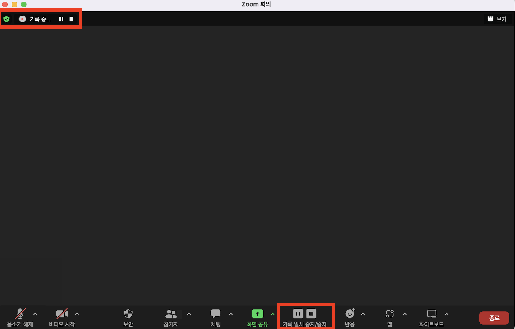 2. 줌 녹화 일시 중지