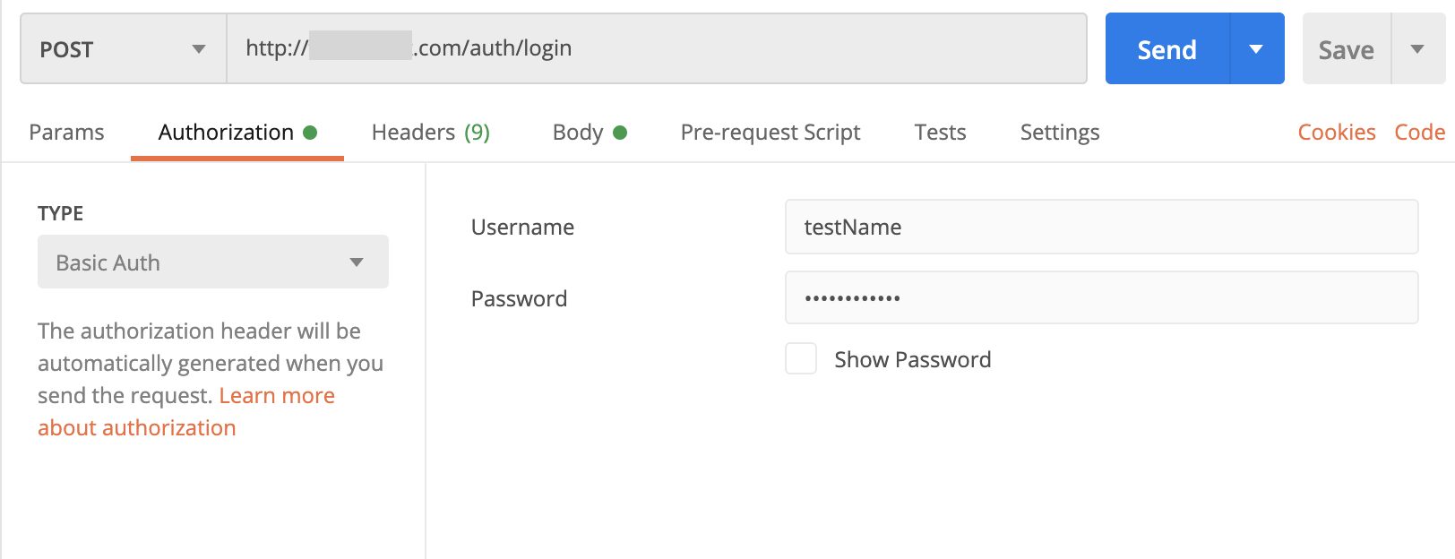 const auth = { username: 'testName', password: "testPassword" } // 사용하고자 하는 계정 정보 입력
